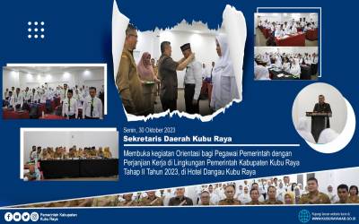 Kubu Raya - Sekretaris Daerah Kabupaten Kubu Raya Yusran Anizam membuka kegiatan Orientasi Bagi Pegawai Pemerintah dengan Perjanjian Kerja di Lingkungan Pemerintah Kabupaten Kubu Raya Tahap II Tahun 2023, di Hotel Dangau Kubu Raya pada Senin (30/10).Dalam waw ...