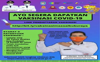 Dinas Kesehatan Kabupaten Kubu Raya akan melaksanakan kembali vaksinasi massal untuk masyarakat yang berusia minimal 18 tahun keatas. Cukup klik dan isi link pendaftaran di sini : ...