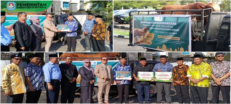 Bupati Kubu Raya Sujiwo menyerahkan satu ekor sapi kurban jenis limosin dari Presiden Republik Indonesia, Prabowo Subianto, kepada pengurus Masjid Darunnajah, Sungai Raya Dalam. Penyerahan dilakukan di halaman Kantor Bupati Kubu Raya pada Kamis (5/6/2025), menjelang peringatan Hari Raya Iduladha.