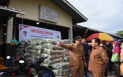 PROKOPIM KUBU RAYA - Wakil Bupati Kubu Raya Sukiryanto meninjau pelaksanaan operasi pasar yang digelar Dinas Koperasi, Usaha Kecil dan Menengah, Perindustrian dan Perdagangan Kabupaten Kubu Raya di Pasar Menanjak, Desa Sungai Raya, Kecamatan Sungai Raya, Selasa (5/8/2025). "Operasi pasar ...