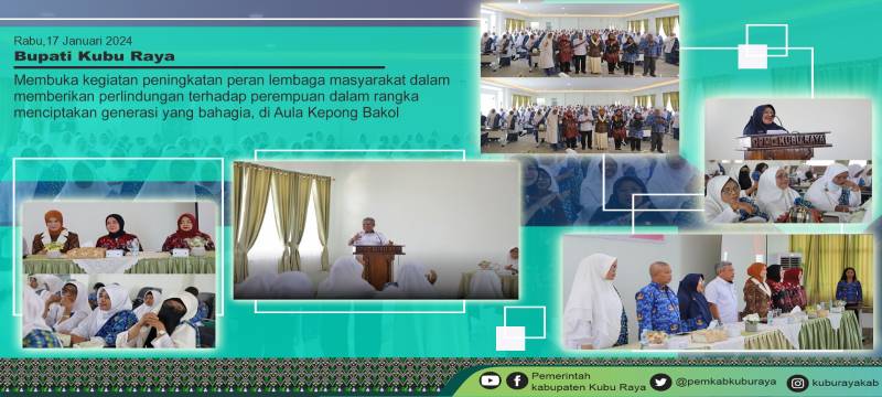 Kubu Raya - Bupati Kubu Raya Muda Mahendrawan membuka Kegiatan Peningkatan Peran Lembaga Masyarakat dalam memberikan Perlindungan Terhadap Perempuan Dalam Rangka Menciptkan Generasi yang Bahagia, di Aula Kepong Bakol pada Rabu (17/1).