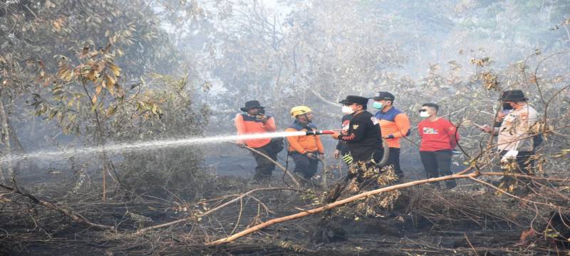 Bupati Sujiwo Ikut Berjibaku Padamkan Api di Parit Ngabeh