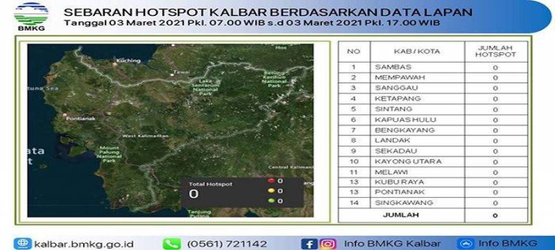 "Rekapitulasi hotspot hari ini pukul 07.00 – 17.00 WIB nol, tidak terpantau adanya titik panas, jumlahnya 0, bisa jadi karena datanya belum masuk juga," ujarnya