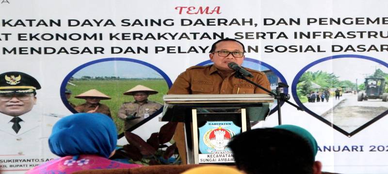 PROKOPIM KUBU RAYA - Bupati Kubu Raya Sujiwo menyampaikan aspirasi masyarakat di Kecamatan Sungai Ambawang masih dominan pada penyelesaian infrastruktur. Meskipun, juga ada sektor lainnya yang menjadi sorotan, seperti sektor kesehatan, pendidikan, pertanian, dan perikanan. Namun, secara khusus Bupati Sujiwo memberikan penekanan pada pemenuhan dan peningkatan pelayanan dasar di bidang kesehatan. Ia dengan tegas meminta kepada manajemen fasilitas kesehatan baik puskesmas maupun rumah sakit untuk tidak mengabaikan masyarakat kurang mampu.