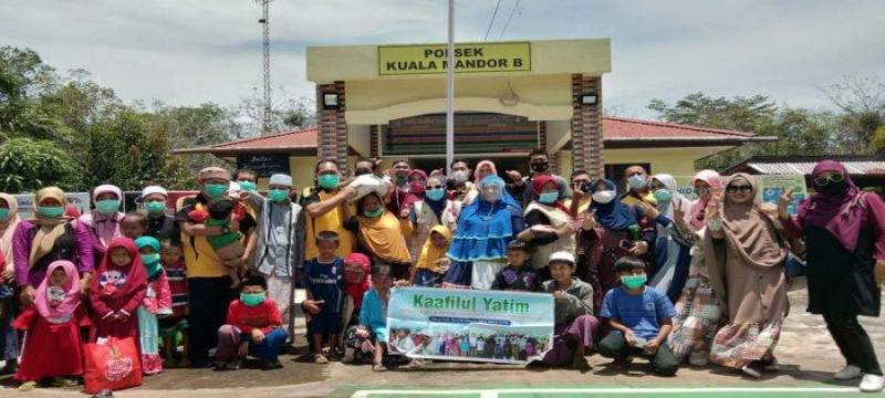 Kegiatan tersebut dihadiri Kapolsek Kuala Mandor B Polres Kubu Raya Iptu Much Shofian beserta anggota dan pengurus Yayasan Kaafatul Yatim.