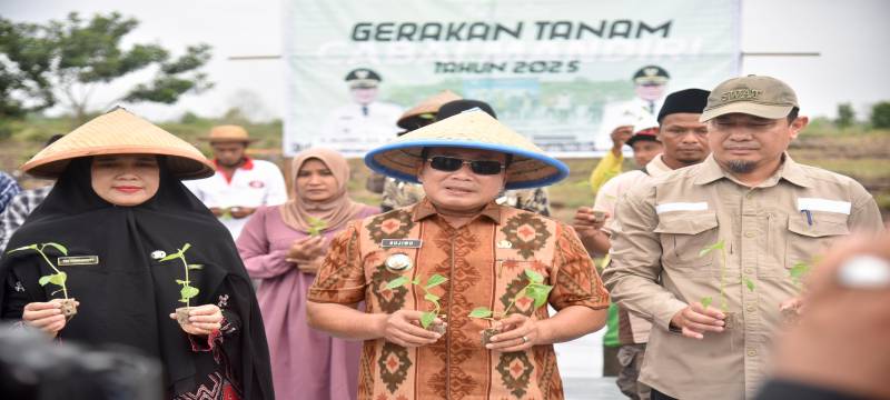 PROKOPIM KUBU RAYA – Mengendalikan inflasi sekaligus menjaga ketersediaan komoditas pangan strategis, Pemerintah Kabupaten Kubu Raya menggelar Gerakan Tanam Cabai di Lahan Kelompok Tani (Poktan) Karangkates Desa Sungai Raya Dalam, Kecamatan Sungai Raya, Jumat (18/7/2025). Bupati Kubu Raya Sujiwo mengatakan meskipun cabai terlihat seperti persoalan kecil, namun keberadaannya sangat berpengaruh terhadap inflasi daerah ketika harganya tinggi dan sulit dijangkau masyarakat.