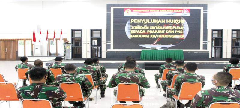 Sungai Raya - Kodam XII/Tanjungpura menggelar kegiatan penyuluhan hukum bertempat di Aula Makodam XII/Tpr. Penyuluhan diikuti oleh segenap Prajurit dan Pegawai Negeri Sipil (PNS) di lingkungan Kodam XII/Tpr. Kegiatan ini merupakan bagian program pembinaan mental bagi Prajurit dan PNS, Kamis (26/11/2020).