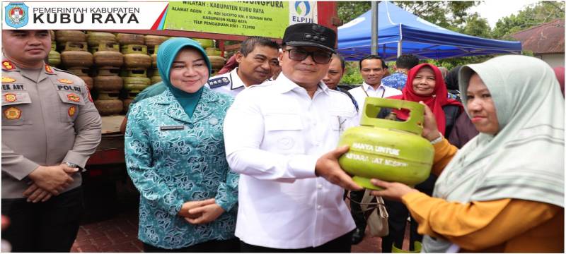 Bupati Kubu Raya, Sujiwo meninjau langsung pelaksanaan Operasi Pasar penyaluran LPG 3 kilogram bersubsidi di halaman Kantor Camat Sungai Kakap, Rabu, 28 Januari 2026.