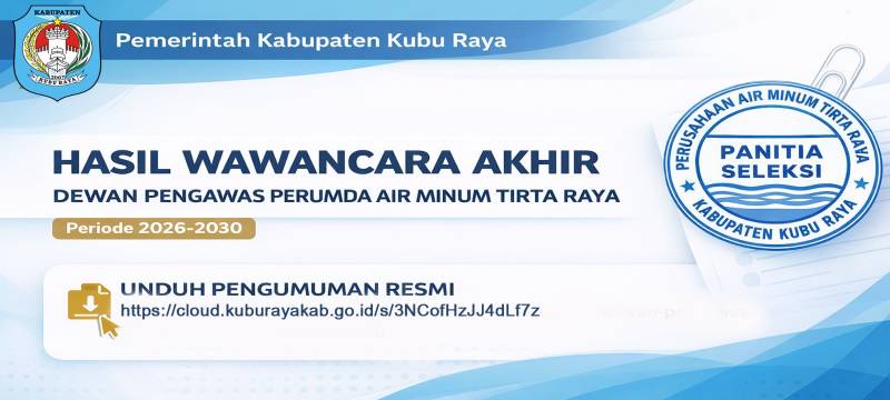 Info Penting - Pemerintah Kabupaten Kubu Raya melalui Panitia Seleksi Calon Dewan Pengawas Perusahaan Umum Daerah (Perumda) Air Minum Tirta Raya telah mengumumkan hasil wawancara akhir Calon Dewan Pengawas Perumda Air Minum Tirta Raya Tahun 2025.