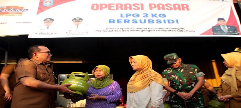 PROKOPIM KUBU RAYA – Pemerintah Kabupaten Kubu Raya menggelar operasi pasar elpiji bersubsidi di sejumlah wilayah di Kubu Raya. Bupati Kubu Raya Sujiwo menjelaskan operasi pasar dilakukan untuk menstabilkan harga dan mengatasi kelangkaan di beberapa titik. Harga jual pada operasi pasar sama dengan harga pangkalan, yaitu Rp18.500 dan khusus untuk masyarakat, bukan untuk toko maupun pengecer.