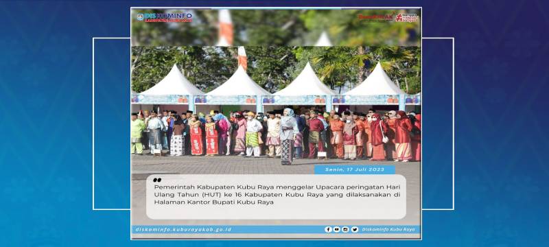 Kubu Raya - Pemerintah Kabupaten Kubu Raya menggelar Upacara peringatan Hari Ulang Tahun (HUT) ke 16 Kabupaten Kubu Raya yang dilaksanakan di Halaman Kantor Bupati Kubu Raya pada Senin, (17/07).
