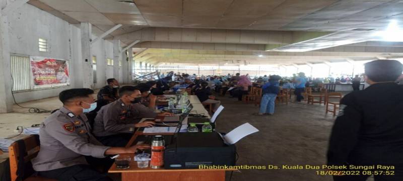 Kubu Raya - Polres Kubu Raya gencar lakukan vaksinasi guna pencapaian vaksinasi terhadap masyarakat Kabupaten Kubu Raya bisa mencapai 80 %, kegiatan gerai vaksinasi massal kali ini digelar di PT. Alas Kusuma Dusun Karya 1 Desa Kuala Dua Kec. Sungai Raya Kab. Kubu Raya, Jum'at (18/2/22).