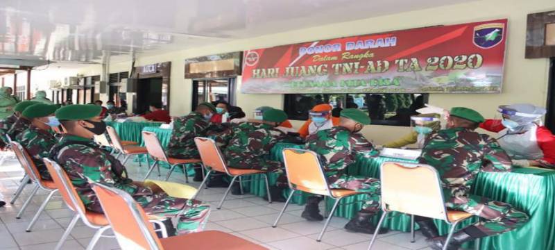KUBU RAYA - Kodam XII/Tanjungpura menggelar kegiatan donor darah yang berlangsung di Rumah Sakit Tingkat II Kartika Husada Kesdam XII/Tpr. Kegiatan bhakti sosial donor darah tersebut dalam rangka menyambut Hari Juang TNI AD ke-75, Kamis (10/12/2020).
