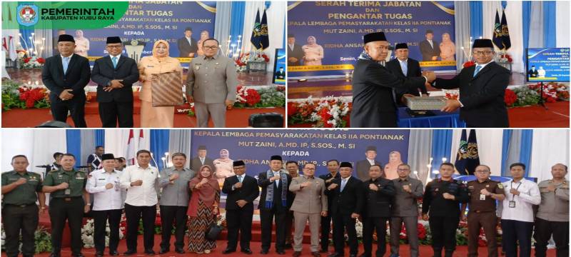 Bupati Kubu Raya, Sujiwo, menghadiri acara serah terima jabatan dan pengantar tugas Kepala Lapas Kelas IIA Pontianak dari Mut Zaini kepada Ridha Ansari yang berlangsung di Aula Lapas Kelas IIA Pontianak pada Senin (29/9/2025).