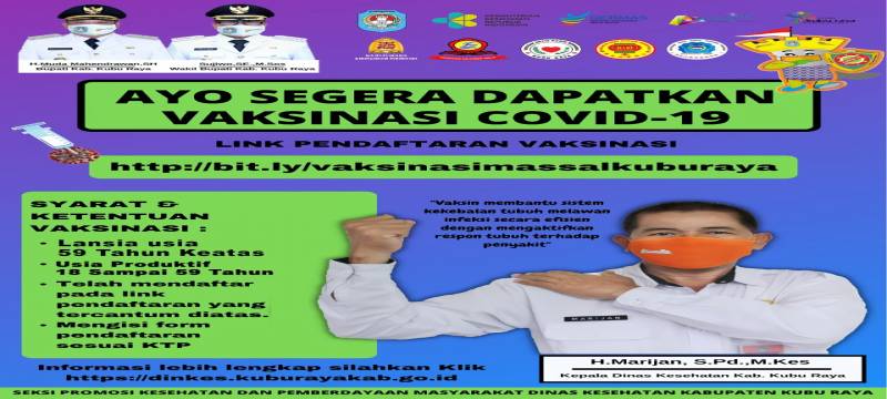 Dinas Kesehatan Kabupaten Kubu Raya akan melaksanakan kembali vaksinasi massal untuk masyarakat yang berusia minimal 18 tahun keatas.