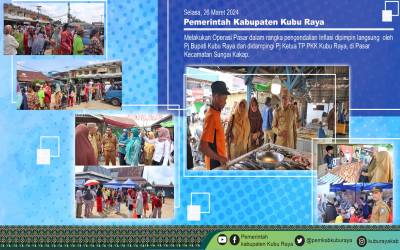 Kubu Raya - Pemerintah Kabupaten Kubu Raya melakukan Operasi Pasar dalam rangka Pengendalian Inflasi dipimpin langsung oleh Pj Bupati Kubu Raya Syarif Kamaruzaman dan didampingi Pj Ketua TP PKK Kubu Raya Ida Nurul Aini di Pasar Kecamatan Sungai Kakap pada Selasa(26/3/2024). ...