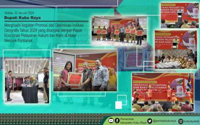 kubu Raya - Bupati Kubu Raya Muda Mahendrawan Menghadiri Kegiatan Promosi dan Desiminasi Indikasi Geografis Tahun 2024 yang dirangkai dengan Rapat Koordinasi Pelayanan Hukum dan HAM, di Hotel Mercure Kota Pontianak Pada Selasa (23/01).Dalam Kegiatan tersebut ...