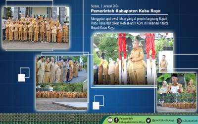 Kubu Raya - Pemerintah Kabupaten Kubu Raya menggelar Apel Awal Tahun 2024 yang dipimpin langsung oleh Bupati Kubu Raya Muda Mahendrawan dan diikuti seluruh ASN dari Pejabat Eselon II,III,IV, Pejabat Fungsional dan Pejabat Pelaksana, di Halaman Kantor Bupati Kubu Raya pada Selasa (2/1) ...