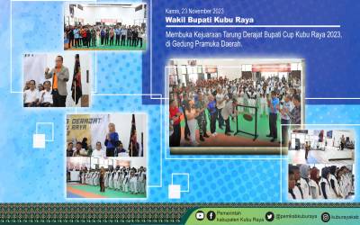 Kubu Raya - Wakil Bupati Kubu Raya Sujiwo membuka Kejuaraan Tarung Derajat Bupati cup Kubu Raya 2023, di Gedung Pramuka Daerah pada Kamis (23/11).Sujiwo dalam wawancaranya mengatakan, ini merupakan kejuaraan Bupati Cup ke-2 antar daerah tingkat Provinsi. Peme ...