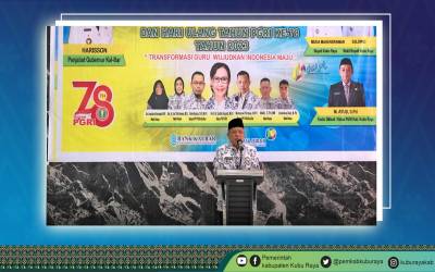 Kubu Raya - Bupati Kubu Raya Muda Mahendrawan menghadiri kegiatan Hari Guru Nasional (HGN) dan Hari Ulang Tahun PGRI Ke-78 dengan Tema Transformasi Guru Wujudkan Indonesia Maju, di Aula Hotel Harmony Inn pada Sabtu (25/11).Muda Mahendrawan mengatakan saat dit ...
