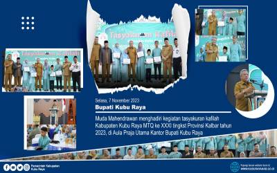 Kubu Raya - Bupati Kubu Raya Muda Mahendrawan menghadiri kegiatan Tasyakuran Kafilah Kabupaten Kubu Raya Musabaqah Tilawatil Qur'an (MTQ) ke XXXI Tingkat Provinsi Kalimantan Barat Tahun 2023, di Aula Praja Utama Kantor Bupati Kubu Raya pada Selasa (7/11).Dala ...
