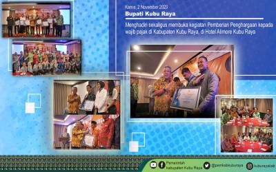 Kubu Raya - Bupati Kubu Raya Muda Mahendrawan mengadiri sekaligus membuka kegiatan Pemberian Penghargaan Kepada Wajib Pajak di Kabupaten Kubu Raya, di Hotel Alimoer Kubu Raya pada Kamis (2/11).Turut hadir dalam kegiatan tersebut Sekretaris Daerah Kabupaten Ku ...