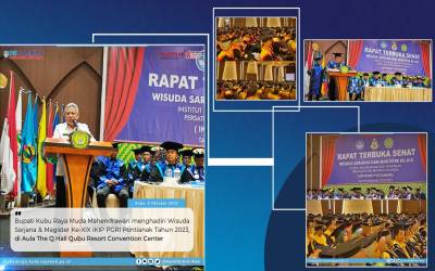 Kubu Raya - Bupati Kubu Raya Muda Mahendrawan menghadiri Wisuda Sarjana & Magister Ke-XIX IKIP PGRI Pontianak Tahun 2023, di Aula The Q Hall Qubu Resort Convention Center pada Rabu (4/10).Dalam sambutannya didepan 436 orang wisudawan/wisudawati, Muda megataka ...