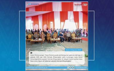 Kubu Raya - Acara Pemancangan Tiang Pertama pada pembangunan gedung olahraga di sekolah SMP dan SMA Kemala Bhayangkari serta kunjungan kerja Ketua Umum/pembina yayasan Kemala Bhayangkari di wilayah hukum polres Kubu Raya, acara digelar di halaman sekolah Kemala Bhayangkari pada ...