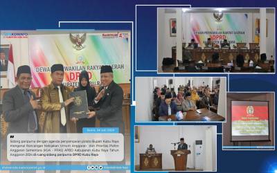 Kubu Raya - Sidang paripurna dengan agenda penyampaian pidato Bupati Kubu Raya mengenai Rancangan Kebijakan Umum Anggaran dan Prioritas Plafon Anggaran Sementara (KUA - PPAS) APBD Kabupaten Kubu Raya Tahun Anggaran 2024 di ruang sidang paripurna DPRD Kubu Raya, pada Senin (24/ ...