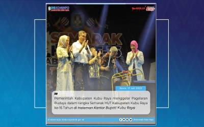 Kubu Raya - Pemerintah Kabupaten Kubu Raya menggelar Pagelaran Budaya dalam rangka Semarak HUT Kabupaten Kubu Raya ke-16 Tahun di Halaman Kantor Bupati Kubu Raya pada Senin, (17/07).Kegiatan tersebut dibuka dengan ditandai pemukulan gong oleh Bupati Kubu Raya didampingi Sekretari ...