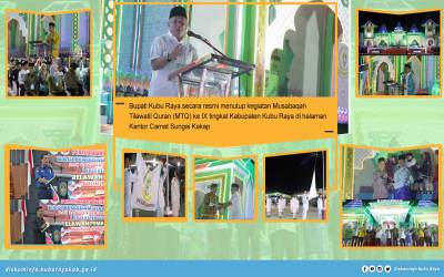 Kubu Raya - Bupati Kubu Raya bersama Ketua TP PKK Kabupaten Kubu Raya secara resmi menutup kegiatan Musabaqah Tilawatil Quran (MTQ) ke IX tingkat Kabupaten Kubu Raya di Halaman Kantor Camat Sungai Kakap pada Kamis, (22/06). ...