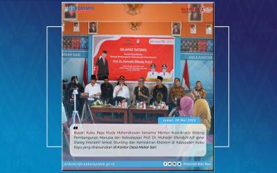 Kubu Raya - Bupati Kubu Raya Muda Mahendrawan bersama Menteri Koordinator Bidang Pembangunan Manusia dan Kebudayaan Prof. Dr. Muhadjir Efendy,M.A.P gelar Dialog Interaktif terkait Stunting dan Kemiskinan Ekstrem di Kabupaten Kubu Raya yang dilaksanakan di Kant ...
