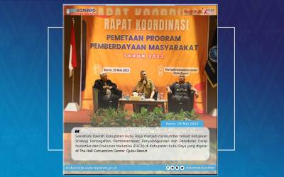 Kubu Raya - Sekretaris Daerah Kabupaten Kubu Raya menjadi narasumber terkait Kebijakan Strategi Pencegahan, Pemberantasan, Penyalahgunaan dan Peredaran Gelap Narkotika dan Prekursor Narkotika (P4GN) di Kabupaten Kubu Raya yang digelar di The Hall Convention Center Qubu Resort pada Senin, ...