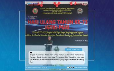 Kubu Raya - Bupati Kubu Raya hadiri Hari Ulang Tahun ke-73 Tahun Ikatan Guru Taman Kanak-Kanak Indonesia Persatuan Guru Republik Indonesia (IGTKI-PGRI) Provinsi Kalimantan Barat yang digelar di Hotel Harmony Inn pada Kamis, (25/04). ...