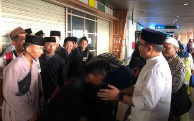 Wabup Sujiwo Antar Ratusan Santri Lirboyo Asal Kubu Raya di Bandara Internasional Supadio