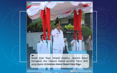 Kubu Raya - Bupati Kubu Raya menjadi Inspektur Upacara dalam Peringatan Hari Otonomi Daerah ke-XXVII Tahun 2023 yang digelar di Halaman Kantor Bupati Kubu Raya pada Selasa, (02/05). ...