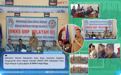 Kubu Raya - Sekretaris Daerah Kabupaten Kubu Raya membuka Kegiatan Musyawarah Kerja Kepala Sekolah (MKKS) SMP Kabupaten Kubu Raya Wilayah 3 yang digelar di SMPN 3 Kubu Raya pada Senin, (20/02).MKKS ini dihadiri oleh seluruh ...