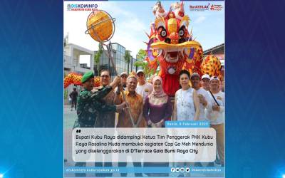 Kubu Raya - Bupati Kubu Raya didampingi Ketua Tim Penggerak PKK Kubu Raya Rosalina Muda membuka kegiatan Cap Go Meh Mendunia yang diselenggarakan di D'Terrace Gaia Bumi Raya City pada Senin, (06/02).Acara yang diwarnai deng ...
