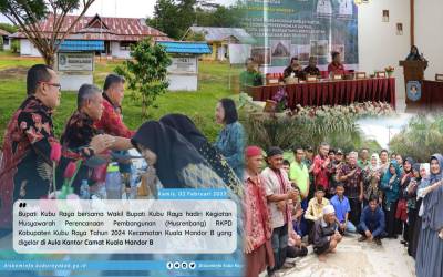 Kubu Raya - Bupati Kubu Raya bersama Wakil Bupati Kubu Raya hadiri Kegiatan Musyawarah Perencanaan Pembangunan (Musrenbang) RKPD Kabupaten Kubu Raya Tahun 2024 Kecamatan Kuala Mandor B yang digelar di Aula Kantor Camat Kuala Mandor B pada Kamis, (02/02). ...
