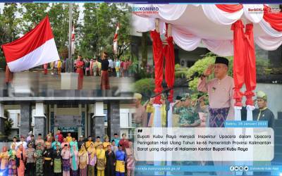 Kubu Raya - Bupati Kubu Raya menjadi Inspektur Upacara dalam Upacara Peringatan Hari Ulang Tahun ke-66 Pemerintah Provinsi Kalimantan Barat yang digelar di Halaman Kantor Bupati Kubu Raya pada Sabtu, (28/01).Kabupaten Kubu ...