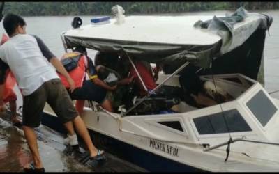 Personel Polsek Kubu Antarkan Warga Sakit dengan Speed Boat