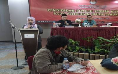 Kubu Raya - Komisi Pemilihan Umum (KPU) Kabupaten Kubu Raya, Kalimantan Barat (Kalbar) melakukan sosialisasi dan memberikan pendidikan pemilih pemilu serentak tahun 2024 kepada kaum disabilitas di hotel Orchard Pontianak, Rabu (23/11/2022). ...