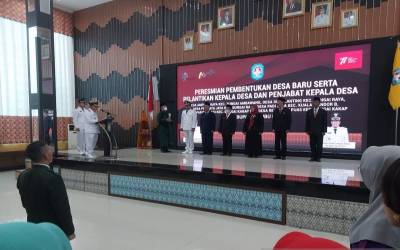 Kubu Raya - Jumlah desa di Kabupaten Kubu Raya bertambah lagi, di momen HUT ke 77 RI, Bupati Kubu Raya Kalimantan Barat (Kalbar) Muda Mahendrawan meresmikan pembentukan desa baru dengan melantik satu kepala desa dan lima Penjabat (Pj) kepala desa ya ...