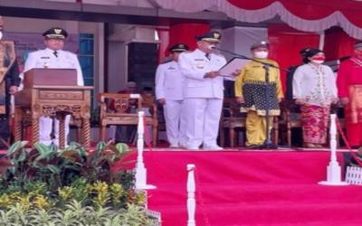 Kubu Raya - Pemerintah Kabupaten Kubu Raya Kalimantan Barat (Kalbar) menggelar upacara bendera peringatan HUT ke-77 Kemerdekaan Republik Indonesia di halaman kantor bupati, Rabu (17/8/2022) pagi.Upacara bendera kemerdekaan RI ...