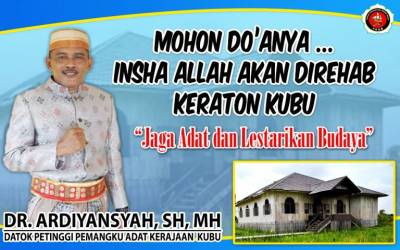 Kubu Raya - Anggota DPRD Provinsi Kalimantan Barat dan juga sebagai Datok petinggi pemangku adat kerajaan Kubu Dr.Ardiansyah.SH.MH. berencana merehab Keraton Kubu untuk meningkat wajah Kecamatan Kubu tersebut di mata dunia. Upaya ini juga sebagai peningkatan pa ...