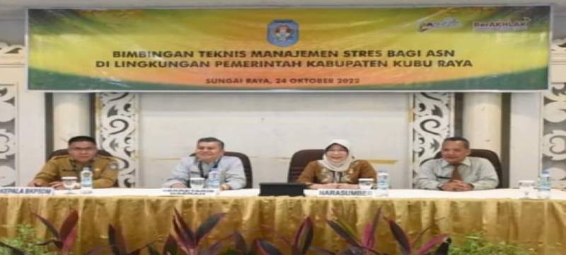 Kubu Raya - Sebanyak 90 pejabat eselon II dan III di lingkungan Pemerintah Kabupaten Kubu Raya, Kalimantan Barat mengikuti Bimbingan Teknis (Bimtek) Manajemen Stres Bagi Aparatur Sipil Negara (ASN) di Hotel Dangau Kubu Raya, Senin (24/10/2022) pagi.