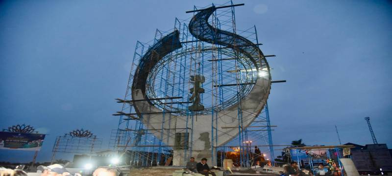 “Jadi malam tahun baru nanti bukan hanya peresmian ini (bundaran dan tugu), bukan hanya ada panggung hiburan, tetapi (juga) malam puncak pengumpulan dana, malam amal,” kata Sujiwo saat meninjau persiapan peresmian di Bundaran Gaforaya, Selasa (23/12/2025).