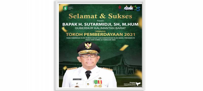 Kalbar - Masyarakat Kalimantan Barat (Kalbar) patut berbangga, Gubernur Sutarmidji terpilih sebagai salah satu tokoh pemberdayaan nasional tahun 2021 yang diselenggarakan Rumah Zakat Indonesia. Sutarmidji terpilih bersama sembilan tokoh nasional lainnya berkat konstribusi dalam berbagai hal terkait pemberdayaan.