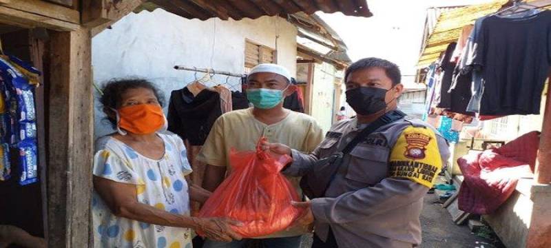 KUBU RAYA - Bhabinkamtibmas Polsek Sungai Raya jajaran Polres Kubu Raya Bripka Uda Yufiandi bersama MPS (Masyarakat Peduli Sesama) kembali menggelar kegiatan berbagi sembako kepada warga pesisir sungai Kapuas Desa Arang Limbung, pada Jumat 26 Agustus 2022.