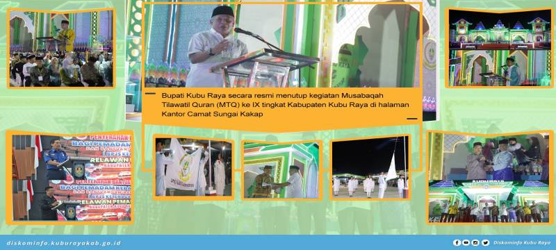 Kubu Raya - Bupati Kubu Raya bersama Ketua TP PKK Kabupaten Kubu Raya secara resmi menutup kegiatan Musabaqah Tilawatil Quran (MTQ) ke IX tingkat Kabupaten Kubu Raya di Halaman Kantor Camat Sungai Kakap pada Kamis, (22/06).